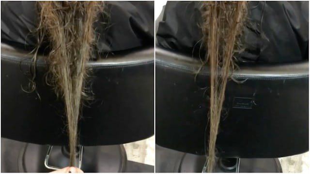 My jaw’s still on the floor after watching this, but Kritel tells Yahoo Style that this is completely normal. She says she’s used to helping her postpartum clients deal with their loose strands after having a baby. “It’s become a running joke among my pregnant clients that after they give birth, I’ll have to pull out their hair,” she says. “The client in the video had a baby four months ago and that’s around when the hair loss starts.”