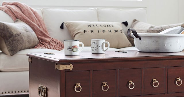 Pottery Barn just dropped their Friends collection in honor of the show’s 25th anniversary, and we want to buy everything. It’s a big month for Friends fans — not only can you tour all the Friends’ “apartments” at a pop-up in New York City but you can also own a “Joey Doesn’t Share Food” mug. Pottery Barn teased the collab earlier this month and it has all sorts of mugs, throw pillows, artwork, and even the apothecary table. Yes, really — the very same apothecary table Rachel actually bought from Pottery Barn in Season 6.