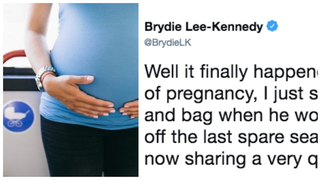 “Well it finally happened in my 8th month of pregnancy,” Twitter user Brydie Lee-Kennedy wrote. “I just sat on a man’s hand and bag when he wouldn’t move them off the last spare seat on the bus. We’re now sharing a very quiet ride.”