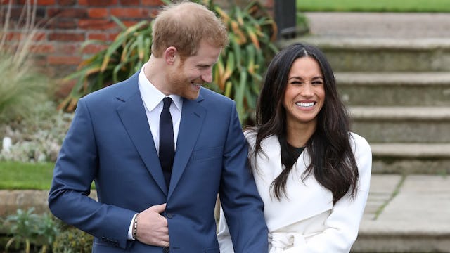 LONDON, ENGLAND – NOVEMBER 27: Prince Harry and Meghan Markle during an official photocall to announce the engagement of Prince Harry and actress Meghan Markle at The Sunken Gardens at Kensington Palace on November 27, 2017 in London, England. Prince Harry and Meghan Markle have been a couple officially since November 2016 and are due to marry in Spring 2018. (Photo by Chris Jackson/Getty Images)