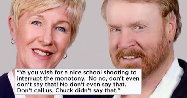 On the Chuck & Julie Show earlier this week, host Chuck Bonniwell mentioned the impeachment process of President Donald Trump and, apparently hoping for other news to distract from the impeachment news cycle, actually said the following words out loud: “You wish for a nice school shooting to interrupt.”
