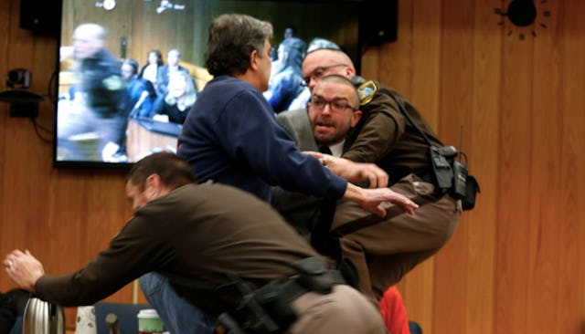 The father of three of former USA Gymnastics doctor and convicted abuser Larry Nassar’s victims tried lunging for him in court this morning. In a video not a single parent will be shocked by, the dad tries getting to Nassar before court bailiffs tackle him to the floor and escort him out in handcuffs.