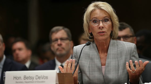 Her family foundation also gave money to an advocacy group working to abolish these sexual assault protections. DeVos’s own acting head of the Office of Civil Rights, Candice Jackson, described the women who accused Trump of sexual assault as “fake victims.”
