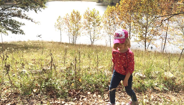 “I hafta pee!” she yells. Which is fine by me, because at this point I sound like a heifer giving birth. We find a place off the trail and I pull down her pants so she can go. Usually she yells at me for privacy but I guess in the woods a little help is welcome.