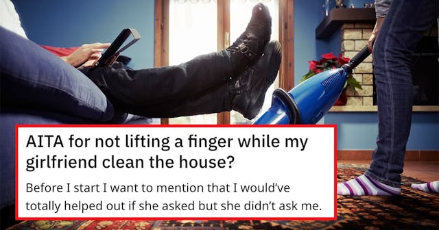 More recently, one of our favorite AITAs was when Reddit shut down a husband who thought his ill wife had to cook for him. But now, user Yeshaoyho’s question “AITA for not lifting a finger while my girlfriend clean the house?” has Redditors all fired up — and quick to give the verdict of “yes, you are the asshole.”