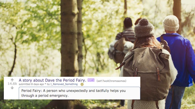 No, Dave doesn’t come fluttering down from the sky on wings made of pantiliners and tampon strings (though that would be pretty fantastic,) but he does come in awfully handy when Aunt Flo pays an unexpected visit in the worst of circumstances. Reddit user I_removed_something, who calls herself “Jane” in this story, was on a hiking trip with all bros when her crimson tide unexpectedly hit shore. Her tale is one of heroism and possibly, romance — because once you read this, you’ll want to marry Dave.
