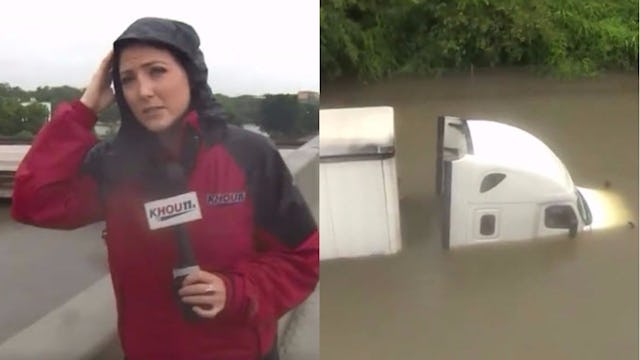 KHOU reporter Brandi Smith was reporting on the storm from the side of Beltway 8, a major Houston highway, and kept reporting even as her own station was being flooded. It was there Smith noticed a truck driver caught in extreme flooding on the road near her and was trapped in the cab of his 18-wheeler, water closing in around him.
