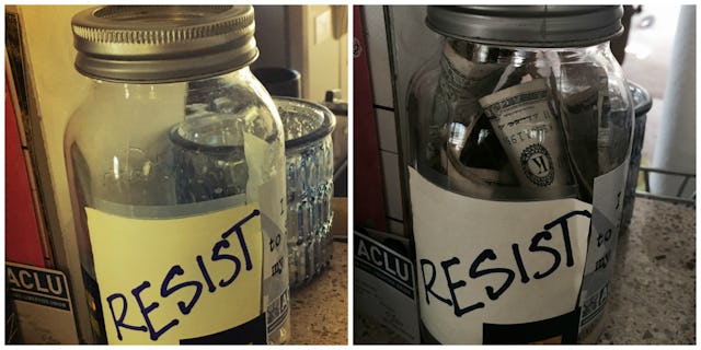 Friends, this Resist Jar is literally saving me right now. It is saving me from falling into a pit of despair. It is saving me from annoying my friends with my incessant bitching about the awfulness of he-who-shall-not-be-named. It is saving me from feeling helpless and hopeless at all times.