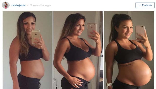 Fitness model Revie Jane Schulz shared a throwback image of herself at 24 weeks pregnant this week. At the time, people could not stop telling her how big her bump looked. That gets real old, real quick when you’re pregnant. She decided to finally address the issue this week.