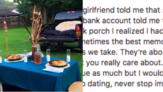 In this social media-filled world of “date night” hashtags and couples out at fancy wine bars beaming at you through the screen, it can be easy to feel like your relationship doesn’t measure up. Not everyone can afford a pricey evening out on a regular basis — or ever, for that matter. But a post from a very thoughtful guy about a “date night” he set up for his girlfriend proves you don’t need money to bring the romance.