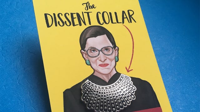 Nick Jehlen, partner and co-founder at Common Practice, had an idea to honor badass Ginsburg and her iconic collar, so over the holidays he was inspired to create some pins representing the collar Ginsburg wore on November 9, 2016, the day after the 45th president of the United States was elected.