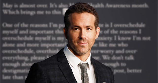 May is mental health awareness month, which might explain why so many of your friends and the influencers you follow online have been more open lately about their experiences with anxiety, depression, and other mental health issues. Ryan Reynolds, who spends most of his time on the internet making us laugh, being a hunk, and otherwise roasting his wife Blake Lively, got sincere for a moment to speak about his “lifelong” struggle with anxiety.