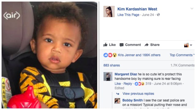 Kim Kardashian found out these truths the hard way this week, after posting an adorable photo of Saint West in the car. As you can imagine, the internet went nuts. Saint was born in December 2015, so he’s only a year and a half — and he may be front-facing in this photo. Commence concern trolling.