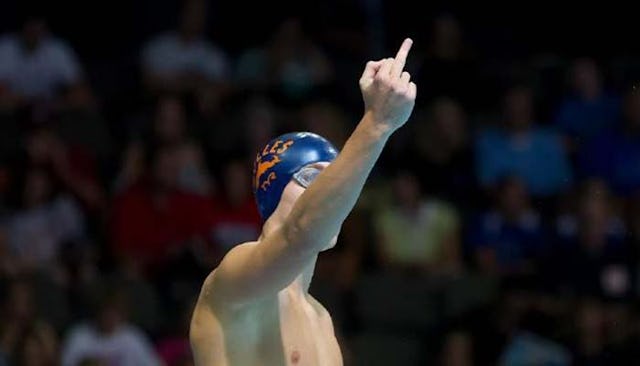 Our New Favorite Swimmer And His Dad Flip Each Other Off Before Each Race