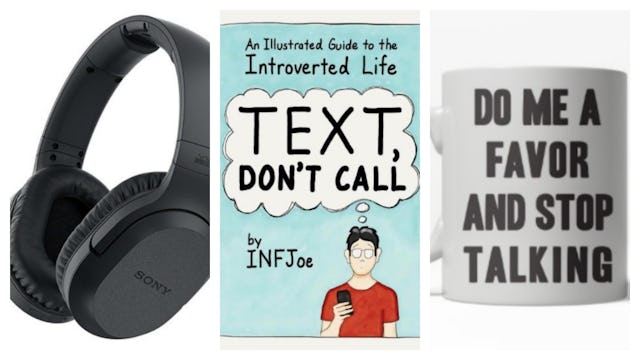 Is your introvert done with subtleties? Allow them to send the message loud and clear that they are not interested in hearing about Susan-from-the-office-down-the-hall’s new dog or her cruise to Aruba with her new boyfriend she met on Christian Mingle. Susan starts her yammering and your friend can zip up their own personal cave.
