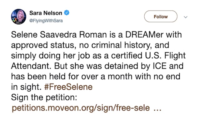 In February, flight attendant Selena Saavedra Roman boarded a plane to Mexico for work. The 28-year-old is a recipient of Deferred Action for Childhood Arrivals (DACA) and therefore unable to travel outside of the country. However, her employer Mesa Airlines told her that she was safe to fly to and from Mexico and scheduled her for the flight.
