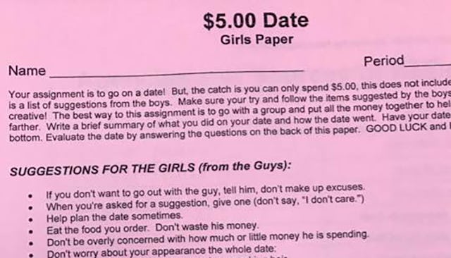 Sexist high school assignment instructed students to go on a date