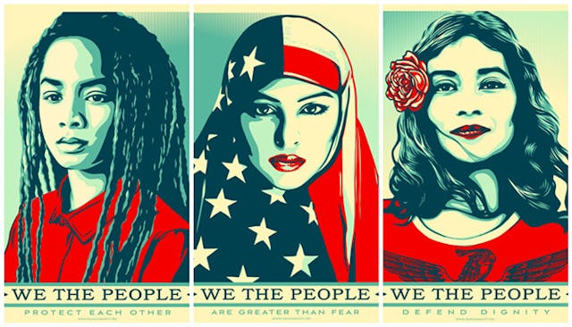 “In 2008, I viewed Obama as an inspiring speaker and leader but also someone who would potentially help push progress on a number of issues that I care about. Many of those issues were about basic human dignity and fairness,” Fairey told The Washington Post. “I think that this campaign is similar in its appeal to human dignity and fairness, but different in that the subjects are not people who have aspirations as leaders. They are any and all of us.”