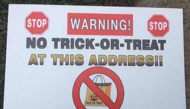 Many local parents appear to be in favor of the signs, he says. Especially since a large, public trick-or-treat gathering held in the local town square was canceled this year — now more kids will be going house to house.