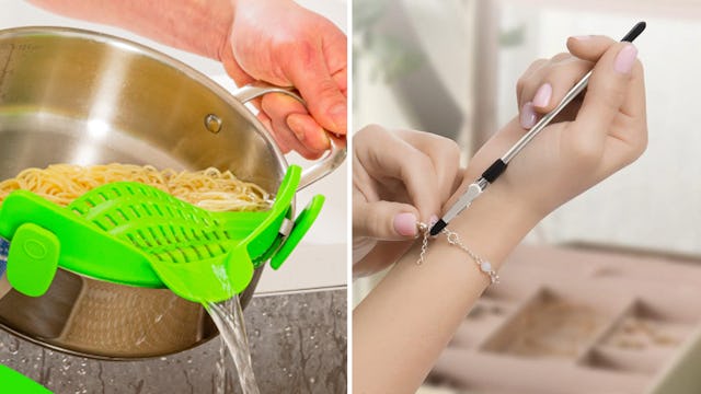 If you often find yourself needing help with the clasps on your jewelry — whether it’s at home or when you’re on a trip by yourself — this bracelet helper tool is a great way to do it yourself. The compact metal tool secures the clasp so you can wrap the bracelet around to hook it together. It works on bracelets, necklaces, watches, zippers, and more, and can fit right in your travel bag. Where has this thing been all our lives?