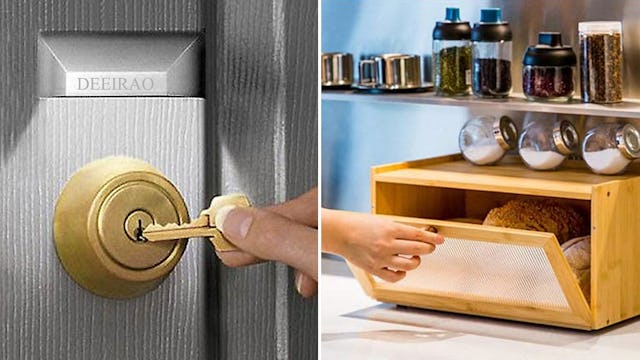 If you’re always fumbling with your keys when you get home past dark, this battery-operated keyhole light is a must. The affordable find features a sleek metallic finish and bright LED lights that automatically switch on thanks to the motion sensor tech. Screws are included for permament installtion, or use the strong adhesive strip that’s perfect for renters.