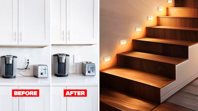 These peel-and-stick night-lights are an effortless solution for brightening up your home where you need it most — like staircases and dim walkways. Frosted shades create a gentle glow, while the motion detectors offer auto on/off convenience. The inexpensive set includes eight lights, so there’s enough for an entire stairway.