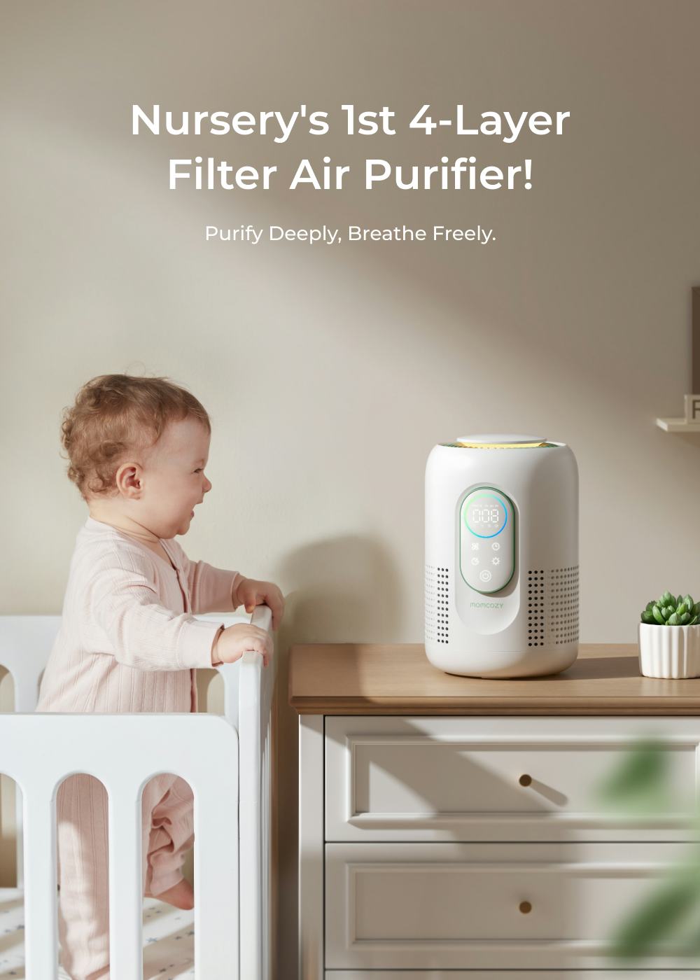 Momcozy understands the needs of babies and the desire of parents to alleviate a disrupted sleep cycle and soothe a sick baby’s cough or allergies with an air purifier in their sleeping area. The Momcozy CozyBreath Air Purifier allows parents to monitor the air quality in their child’s sleeping area in real-time, assuring them that the device’s unique silver ion filtration layer is working.