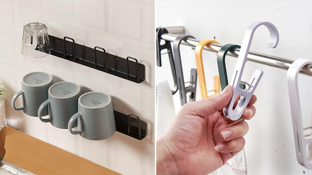 Stick this two-pack of wall-mounted mug holders above your coffee bar or kitchen countertop to always have your mugs or cups right there. The metal racks can each hold four cups or mugs in an upside-down position. The racks can also double as a spot to air dry mugs after washing them. Since they come with adhesive, there’s no need for drilling.