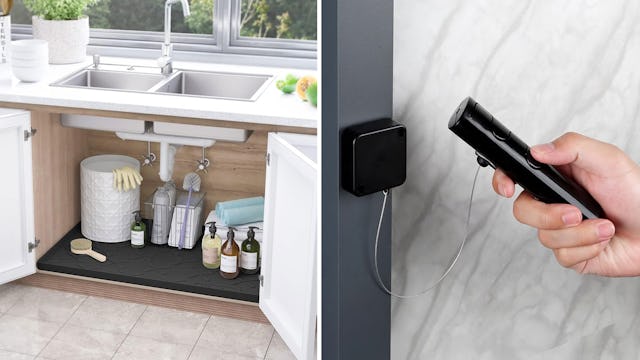 Cleaning the cabinet under the sink can be a big job (especially when there’s a leak), making this waterproof under-sink mat a must. It’s made from thick, flexible silicone with a textured surface for increased airflow and has a raised edge that can contain over 3 gallons of liquid. Simply press the edge down to drain water or pull it out to rinse it clean.