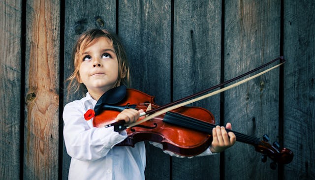 My 5-year-old son started violin lessons last week, and he seems kind of, well, meh on the whole thing. My husband and I both play guitar and sing around the house, so he’s been exposed to lots of music from infancy. He likes to sing and requested the music lessons when a friend gave us a hand-me-down violin. But during the actual lesson, he clammed up and only grudgingly sang back the melodies the instructor taught him. It remains to be seen if he’ll want to continue, and if he’ll put in enough practice time to make the lessons “worth” it.