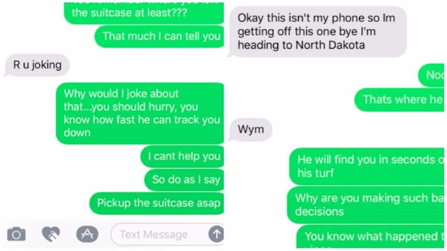 They concoct a scenario involving a suitcase full of cash and a scary bad guy hot on their tail. The best part? It works.