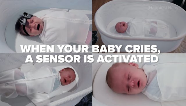 According to a video from BuzzFeed, the Snoo Sleeper was invented in conjunction with Dr. Harvey Karp, he of the “Happiest Baby on the Block” books fame. The cradle, referred to as a “smart crib,” works by way of sensors that detect a crying baby and quickly adjust levels of white noise and rocking to help soothe the child back to sleep.