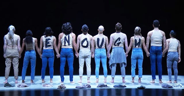 In the dance, Benjamin Castro, Gino Cosculluela, Eddie Hoyt, Madison Jordan, Anna Linstruth, Bailey Munoz, Sophie Pittman, Mariah Russell, Ezra Sosa, and Stephanie Sosa danced with movements that evoked the sudden jolts of violence that accompany mass shootings, and then the grief and fear that ripple across communities as a result. It was a haunting routine that ended with the dancers taking off their shirts and turning around to reveal “ENOUGH” written across their backs.