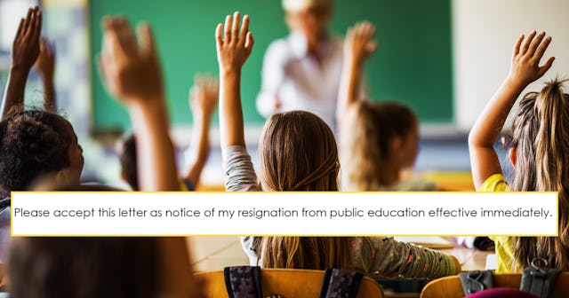 “Please accept this letter as notice of my resignation from public education effective immediately,” she begins.