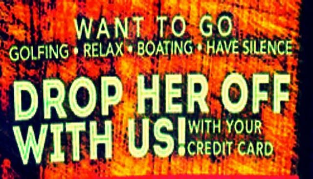 A Pasadena spa posted this to their Instagram page with the caption, “Project Beauty Spa offers #wife #daycare! In need of some #alone time or some time with your boys? We’ve got you covered! Just drop her off with your credit card and we take care of the rest!” This is a sign that lives outside the door of their establishment. An establishment owned by women, who’ve apparently been frozen in a block of ice for several decades, and emerged to open their dream business.