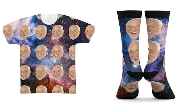 Don’t you hate those mornings where you look through your closet and your dresser drawers and you can’t find anything to wear? And then you think to yourself, “Man, I just wish I had a shirt that looked like the universe and covered with pictures of my best friend’s face”?