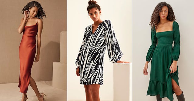 Just an FYI, mama: dresses aren’t only for the warmer months. Fall allows us to wear our long knit dresses and finally slip on that sexy black number with the slit and long sleeves (you know the one). Need I mention the amazing fall color palette? Lots of burgundy, orange, and navy blue — all colors that just make you feel nice and cozy. And yep, we’ve rounded up all of that and then some.