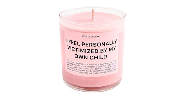 Now we know kids don’t “victimize” us on purpose. They can’t help it and it’s our job to make them feel comfy, fed, clothed, and safe at all times. But damn if it’s not the hardest job in the entire world, and if a fun candle with a snarky label relieves a little of the pressure, we should probably start buying them in bulk to give as new baby gifts to every mom we know.