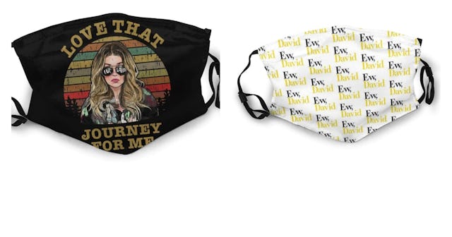 Dozens of Schitt’s Creek face masks are available on Etsy and Amazon