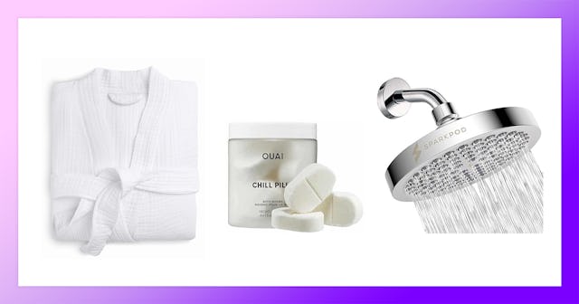 Turning your bathroom into a relaxing space doesn’t have to be overly complicated. I’m sure you already have a couple of spa night ideas in mind, but it’s as simple as having the right spa products at home. Whether your idea of R&R includes a great shower head, scented bath bombs, hydrating beauty products, or a luxuriously soft towel (or all of it in one big spa kit), it only takes a few products to make the space feel more relaxing than it did before (towels on the floor and mis-matched bottles of product can live in the kids bathroom, thank you). Think of this as your own personalized spa that you can visit in your own time, in the comfort of home. Besides, where you choose to unplug and reset is less important than finding the time to do it, even if it’s just a short — but uninterrupted — bath or shower.