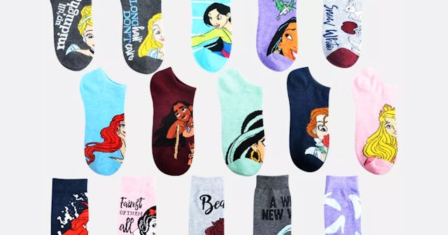 The “15 Days of Socks Advent Calendar” comes with a mix of five pairs of crew-cut socks and ten pairs of low-cut socks, all to bring some “fun and flair” to the holidays, the Target website explains. Have a favorite color? No problem. The calendar comes with purple, blue, gray, green, pink, and more while featuring a variety of Disney Princess-themed prints and patterns — including Mulan, Pocahontas, Belle, Jasmine, Snow White, and other favorites.
