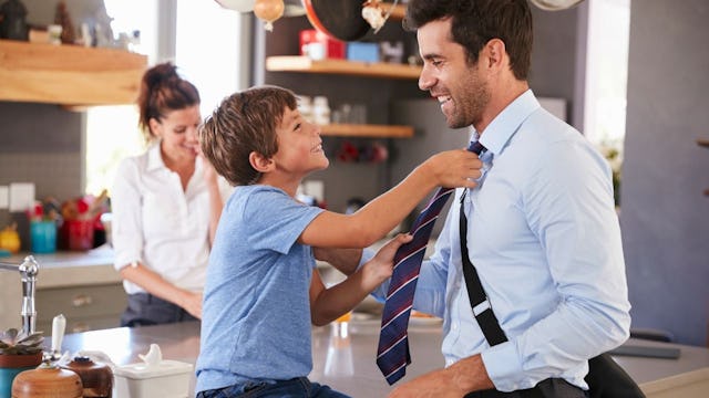 He might be physically around less hours in the week, but he’s more emotionally present.