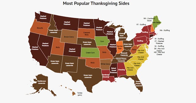 Map Reveals Most Popular Thanksgiving Side Dish In Each State And Who Hurt Maine?