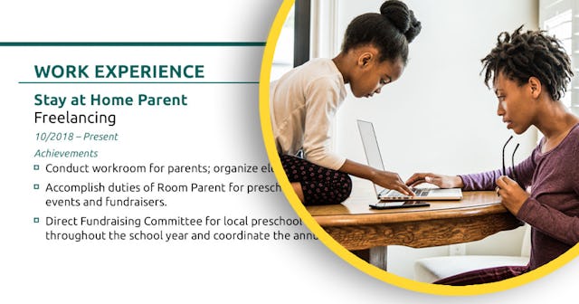 “The trick here is to focus on any skills learnt during your time as a stay-at-home mom, especially skills relevant to the job you’re applying for,” Novoresume explains. Are you the treasurer of the PTA at your kid’s school? Great, you’ve got basic bookkeeping skills! Did you book the venue for your Girl Scout Troop’s daddy/daughter dance? You’re basically an event planner, then. Have you been blogging about #momlife for years? You definitely have excellent written communications skills.