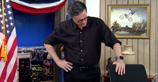 “We’re taping this just a little while after Donald Trump walked into the White House briefing room, actually, and tried to poison American democracy. That’s why I’m not sitting down yet. I just don’t feel like it yet,” Colbert said, motioning to his black shirt and pants. “That’s also why I’m dressed for a funeral. Because Donald Trump tried really hard to kill something tonight.”