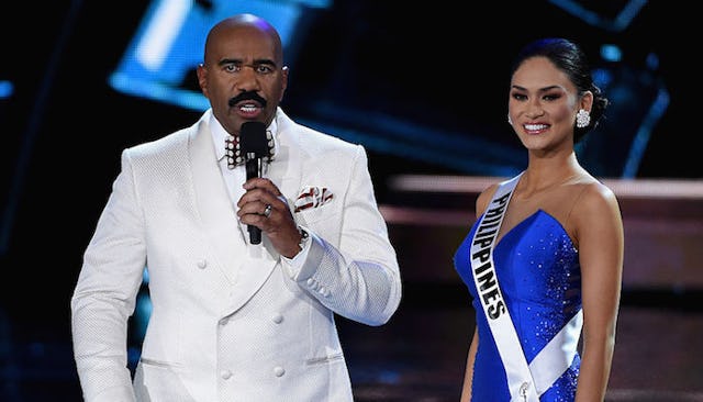 Steve Harvey had a worse day than all of us yesterday when he announced the wrong winner during the Miss Universe pageant. In what will easily beat out all the competition for most awkward video of the year, Harvey is shown announcing Miss Colombia as the winner of the pageant. She’s crowned and goes through the whole wave, walk around the stage, and blow kisses rigamarole before Harvey finally appears — a full three minutes later — to be like, “Oh wait, I meant Miss Philippines.”