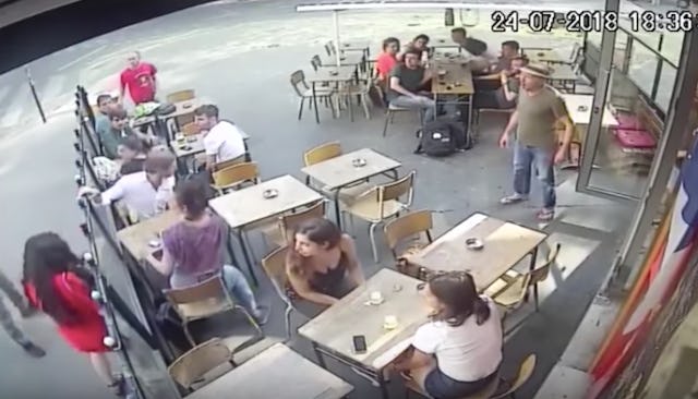 In the video, French student Marie Laguerre confronted a man who whistled at her. In view of a cafe’s CCTV camera, he turned back when she yelled at him and punched her, nearly knocking her to the ground.