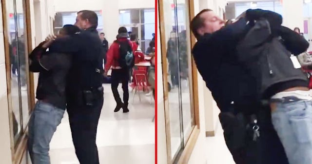 The video, which was originally shared on Facebook by a student and obtained by The Root writer Michael Harriot, shows the officer choking the student and lifting him into the air with his arms wrapped around his neck. The student, Dekyrion Ellis, says that officer Jake Perry put him in the chokehold after Ellis got into an argument with another student.