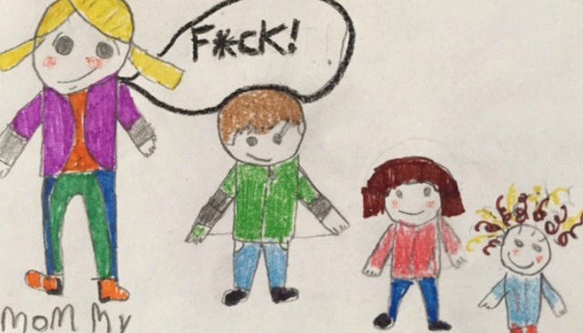 I need to give true voice to my feelings as I dig the embedded Lego Batman from my heel (ahhhgain), remove the sock from the toilet bowl (“But Mom! It looked like a paper towel”), bake and frost 24 cupcakes at 1 a.m. for the class party at 8 a.m., try to make sense of third-grade math (just no), or switch lanes on the BQE while three kids argue to the death about which of them likes cheese the most (seriously, and it’s me). I need everyone to shut the fuck up and calm the fuck down, so Mommy can figure this out.