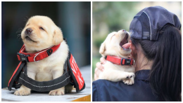 While the phrase “Blondes have more fun” is sexist and tired as hell, Pan admits Fushin, the only golden colored puppy, rules the rest. “Fushin is very special,” he says. “He is the naughtiest and the bossiest.” He’s also getting a special assignment as a blood detection dog.